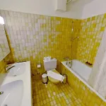 V koupelnách je samostatná toaleta, vana a sprcha.